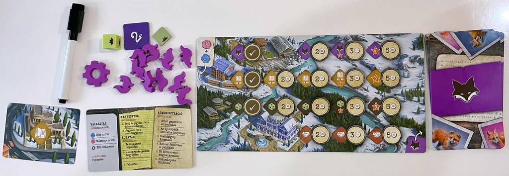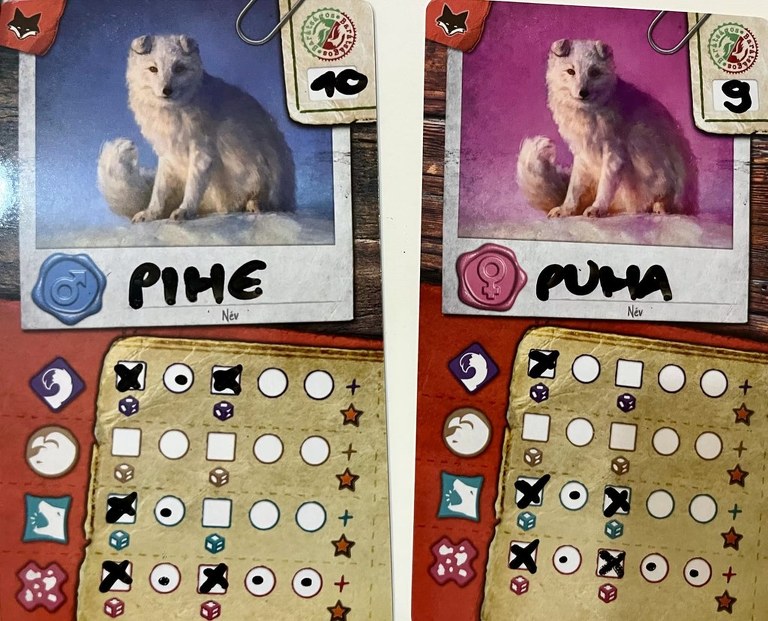 A játék csodaszép, a téma és a háttértörténet érdekes. Imádom, hogy a szimultán fázisok miatt nincs holtidő, és létszámtól függetlenül egy óra marad a játékidő. Bár magamnak dobálom a kockákat és irkálom be a tulajdonságokat, a választásfázisnak köszönhetően bőven van interakció, nem érzem azt, hogy egymagamban játszadozok. Hogy egyedül és ketten játszva is izgalmas legyen a választás, automatizált ellenféllel fűszerezzük meg a partit - én személy szerint nem vagyok oda ezért a megoldásért, engem kiragad a flowból, amikor helyette cselekszem. Megosztó érzés volt a kölyökkártyákra először filccel írni: volt, akit izgalomba hozott, mást pedig megijesztett. De ijedtségre semmi ok, ha a játék végén letöröljük a lapokat, nem maradnak maszatosak. A kölykök elnevezése egy nagyon cuki kis plusz, ami miatt még jobban bele tudjuk élni magunkat a játékba. Állatszerető családoknak kötelező darab!