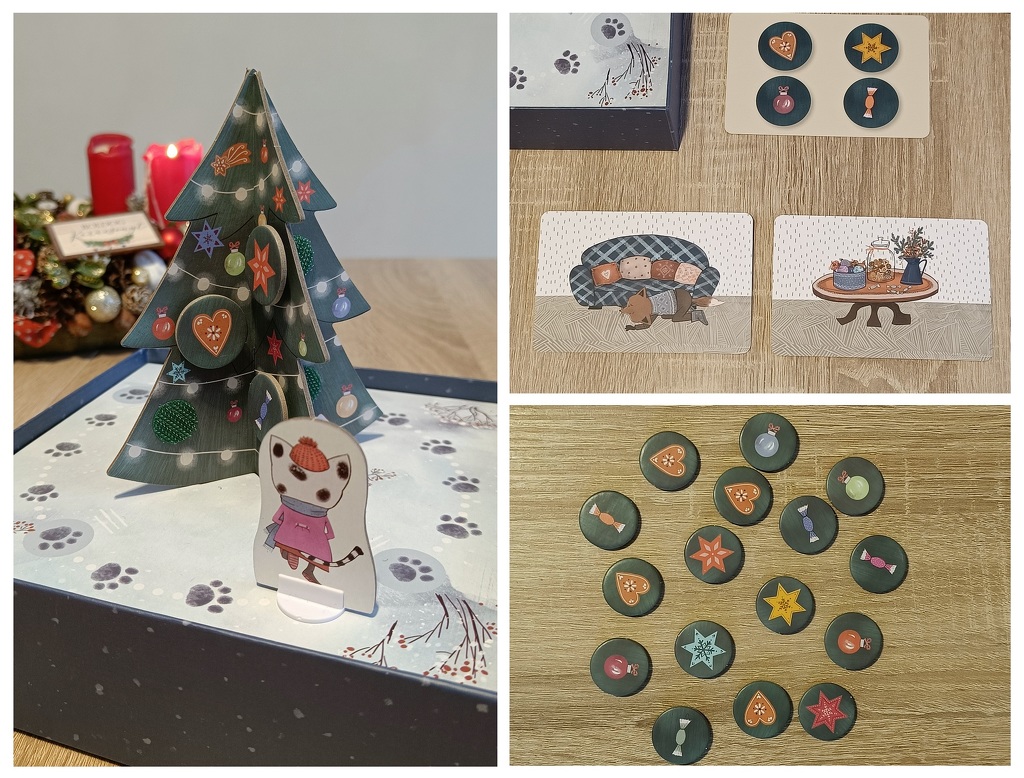 A Babaróka karácsonyában a játékostársainkra kell figyelnünk. Főleg arra, aki a bal oldalunkon ül, hiszen tőle fogunk kérni díszeket, de a többi játékost sem hagyhatjuk figyelmen kívül. A négy különböző díszből 4-4 darab van, így tapasztaltabb játékosok ki tudják következtetni, hogy mire érdemes rákérdezni. Ebben a játékban nincs szoros versengés, nincs kigolyózás és tulajdonképpen kudarc sincs. Olyan emlékeket ébreszt bennem, mint amikor a nagyszüleimnél segédkeztem a karácsonyfa díszítésben. Van benne valami megnyugtató, ünnepies, nosztalgikus elmerülés. Ezt a grafikai megjelenés, a színek méginkább alátámasztják. A Babaróka karácsonyát 3 éves kortól ajánlják kipróbálni. A szabály azt javasolja, hogy könnyítésként elhagyhatjuk a bútorok megnevezését és csak arra kérdezzünk rá, hogy van-e náluk egy adott típusú dísz.