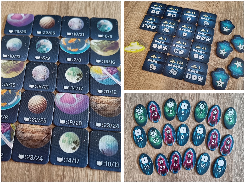 Ha már kiismertétek az alapjátékot, három különböző haladó verziót próbálhattok ki, amiket akár kombinálhattok is. Az UFÓban érkezik egy UFÓ jelölő a playmat utolsó mezőjére. Minden expedíció elején felfedünk egy expedíciólapkát, ami több eseményt indít el. Előszöris mozgatja az UFÓt lefelé, aztán meghatározza, hogy a fordulóban hány kockával dobhatunk és biztosít egy különleges kockaképességet a parancsnoknak az adott fordulóra. Így akár még újra is dobhat velük vagy átviheti a felhasználtakat is a következő fordulóra. Ha találkozunk az UFÓval akkor a kapitány 1-5 érték közötti bónusz pontot kap. Az Űrkutatások variációban az előkészületek során véletlenszerűen húzunk öt űrkutatáslapkát, amit a rajtuk látható mezőkre rakunk a playmaten. Ha elérjük ezeket a mezőket, akkor a hatásuk azonnal aktiválódik. Ezekért kaphat a parancsnok bónusz pontot, visszaszerezhet egyet a félretett kockák közül vagy azonnal előreröpülhet a rakéta négy mezőt. Az űrkutatáslapka használat után kikerül a játékból, majd újat húzunk, így mindig öt lesz a utazási sávon. A Titkos küldetésekkel minden játékos három cél teljesítését tűzi ki maga elé, azaz a lapkákon meghatározott bolygón vagy holdon kell kiszállnia. Minél több küldetést teljesít, annál több győzelmi ponthoz jut.