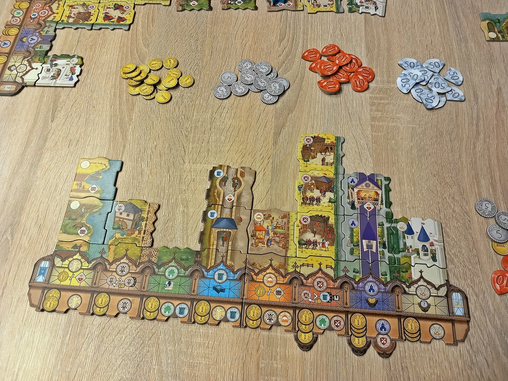 A játék 16 forduló után ér véget, vagyis összesen 16 lapkát fogtok lerakni a játék során. A játék végén az győz, aki a legtöbb pénzt gyűjtötte.