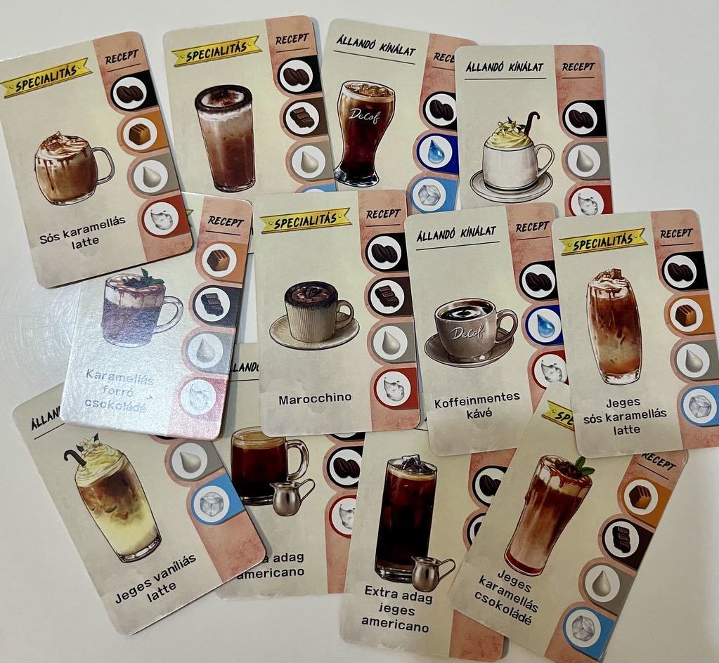A játékszabály három extra variációt is kínál nekünk. Az "Egy torta 2 italért"-ban a tortakártyákat nem a következő lapot figyelembe véve szerezhetjük meg, hanem az első sáv minden második rendeléskártyájára automatikusan kerül tortácska. A "Hosszú játék"-ban az előkészületek során belekeverjük az új italokat a régiekbe, viszont nem távolítunk el kártyákat. Így a húzópaklink nagyobb lesz - esetleg a játék is hosszabb -, a tortás rendelések pedig ritkábban fordulnak majd elő. A "Különböző fejlesztések"-et választva az előkészületek során mindannyian kiválaszthatjuk a saját fejlesztéslapkánkat.