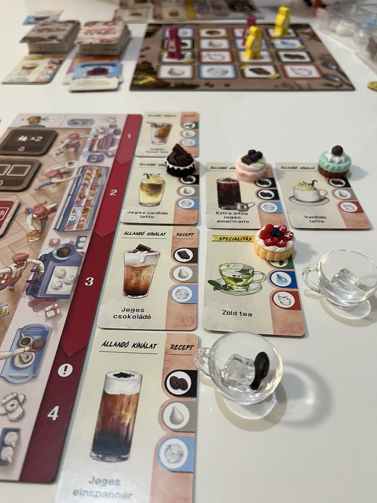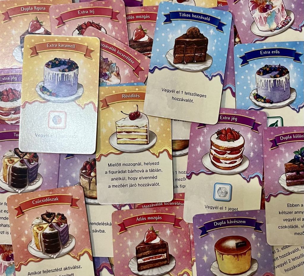 A Coffee Rush: Hab a tortán még színesebbé és izgalmasabbá teszi az alapjátékot az új rendeléskártyák és fejlesztések révén, amelyek növelik a változatosságot és az újrajátszhatóságot. A tortácskák még cukibbá teszik az eddig is lenyűgöző asztalképet. A tortakártyák nyújtotta előnyök megkönnyítik a rendeléseink teljesítését, és a fejlesztések különböző kombinációi is elég ütősek. Ezek növelik a taktikai lehetőségeinket, de nekik köszönhetően a büntetőpontok is lassabban gyűlnek, amitől a játék hosszabbá válik. Bár én szerettem a Coffee Rush "kegyetlenségét", pörgősebb és szűkösebb volt az alapjáték önmagában, édesszájúként nem kérdés, hogy asztalra kerülnek-e a torták! Sütiimádóknak kötelező darab!