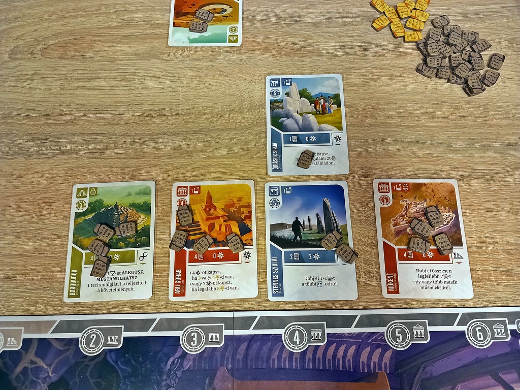 Gyerekkorunk óta érdeklődünk az ősi kultúrák iránt, ezért grafikai elemek és a gondosan összeválogatott építészeti csodák nekünk közel hozták a játékot. Főleg, hogy néhány épületről és tárgyról még hírből sem hallottunk. Emiatt bőven van felfedezni való a játékon kívül is (aki erre fogékony), mert sajnos a kártyák ismertető szöveget nem kaptak.