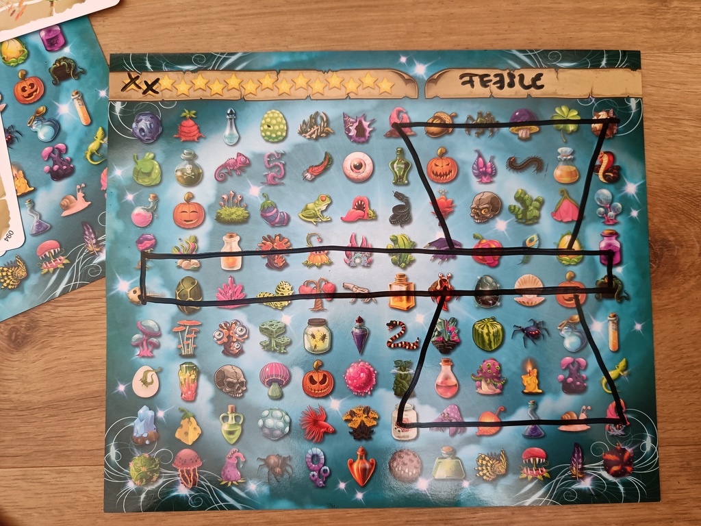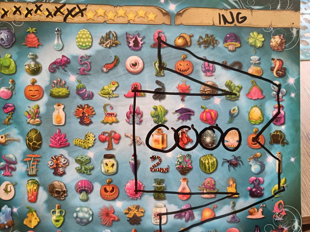 Az Imagenius több emléket is felidézett bennem. Az egyik az, amikor még gyerekkoromban a pontokat, számokat kötöttem össze és ezekből kirajzolódott például egy elefánt. A másik a böngészős könyvekre hajaz, amikben zsúfolt oldalakat fürkészve kell megtalálni különféle tárgyakat. Ezeket összerakták, hozzákevertek még egy kis gyorsasági elemet meg egy kis nehezítést és egy igazán príma játék lett belőle. A szabálya pillanatok alatt átadható és már indulhat is a játék. Gyerektársaságban osztatlan sikert aratott, gyakorlatilag nem is akartak mással játszani, még azok sem, akik kevésbé szeretnek rajzolni. Azt gondolnánk nem nagy kunszt összekötni tárgyakat, de például a tökből is négyfajta van a táblán, így elsőre lehet, hogy nem is azt találjuk meg, amelyik kellene. Jól ellensúlyozza a játék, ha valaki jól teljesít, ő a következő körben kap egy kis extra súlyt a hátizsákjába, nehogy nagyon meglóduljon. A tábla szürkés hátlapján már igazi kihívás megtalálni a varázstárgyakat. A végén pedig jöhet a kérdőjel: Oké, kész vagyok, de mi a túró lehet ez?... Elforgatom, hmm... még mindig nem látom mi lehet… Engem egy falevélre emlékeztet. Vagy inkább madártoll?... Többször megesett, hogy a gyerekek megfejtették, de a felnőtt játékostárs csak pislogott és nem látta meg, hogy mi rajzolódott ki a tábláján.