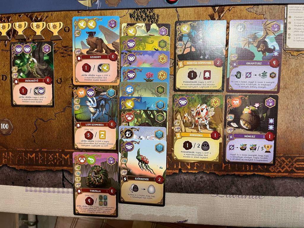 Extra tipp az első játékhoz: próbáld meg úgy kialakítani a tablódat, hogy a kártyák egymásra hatással legyenek, több jutalommal, illetve próbáld meg minél előbb feloldani a vezetőd képességét.