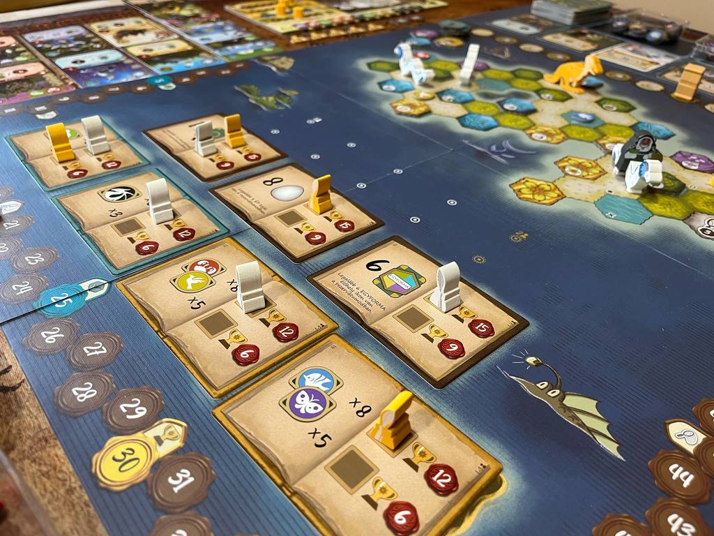 A játék akkor ér véget, amikor a serlegek elfogynak. Összeszámoljuk a kártyákon lévő pontokat, a játék végi pontozókat, a kihívásokat és a megmaradt eledeleket, illetve lepkehálókat és a legtöbb ponttal rendelkező játékos lesz a legvakmerőbb felfedező. :)