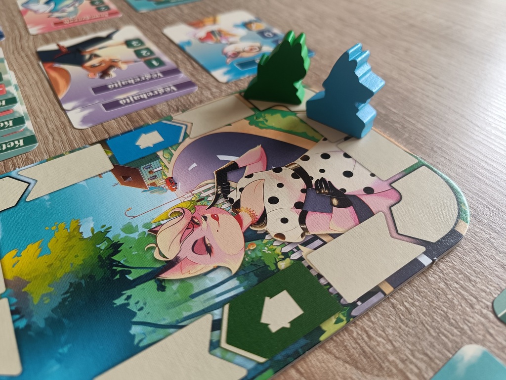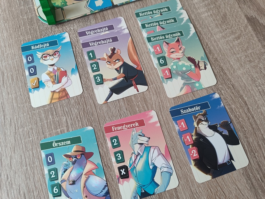 Szeretem a kétszemélyes, kompakt játékokat, egyik ilyen favorit nálunk a Schotten Totten. Összetettebb ugyan, de szintén nagy kedvenc a 7csoda párbaj és a Splendor párbaj, amikben szeretem azt a lehetőség, hogy nem csak egy győzelmi feltételre kell koncentrálni, hanem több szálon kell futtatni az eseményeket. Ezt a többféle győzelmi utat alkalmazták a Kertvárosi kémekben is, ami egy könnyed, negyedórás fogócska lett, szettgyűjtögetéssel párosítva. Ami érdekessé teszi az az, ahogy igyekszünk túljárni egymás eszén és próbálunk rájönni, miben mesterkedik a másik játékos. Fokozza az izgalmakat a Feketepiac kártyák használata, amikkel ha ügyesen taktikázunk, könnyen előnnyé formálhatjuk a hátrányunkat. Mindképp tegyetek egy próbát vele, ha szeretitek a kétszemélyes, gyors, gondolkodós játékokat. Izgalmas kémjátszma lesz!