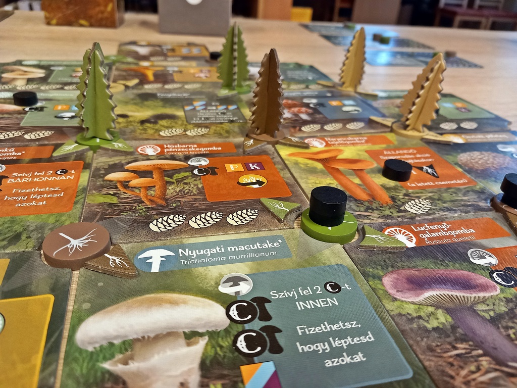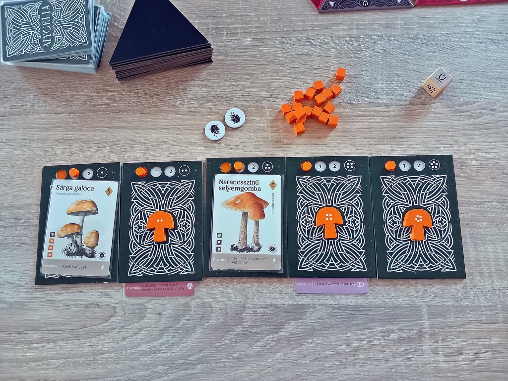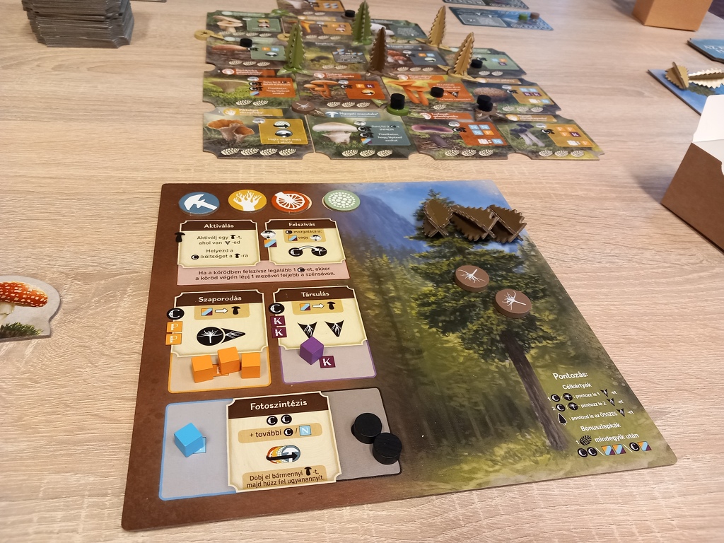 Az első, a fent említett három játék közül a Mycology. Ez a játék nem jelent meg magyarul, de rajongói szabályfordítás elérhető hozzá (itt), egyébként pedig játéktechnikailag nyelvfüggetlen.
