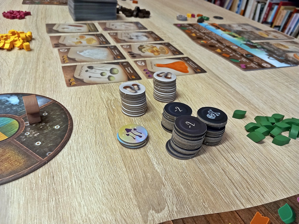 A játékban vannak mérgező gombák, amik miatt méregjelzőt kaphatsz bizonyos erőforrások begyűjtésekor. Találunk varázsgombákat is az erdőben, amiért varázsjelző jár. Ezek elköltésével módosítani lehet az évszakot, vagy két pontot ér a játék végén.