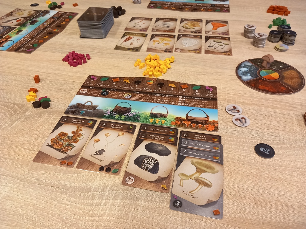 A Mycology-nál nem értek egyet a kevés játékos interakcióval, mert nemcsak a másik kosarából elcsenéssel, hanem az évszak jelölő tudatos mozgatásával, és a közös piacon levő gombakártyák mozgatásával igencsak komoly ráhatással vagyunk a többiek játékára. Persze ez nem fogja elérni a Mycelia konfrontatív szintjét, de nem is egymás mellett pakolásszuk a gombákat a kosarunkba.