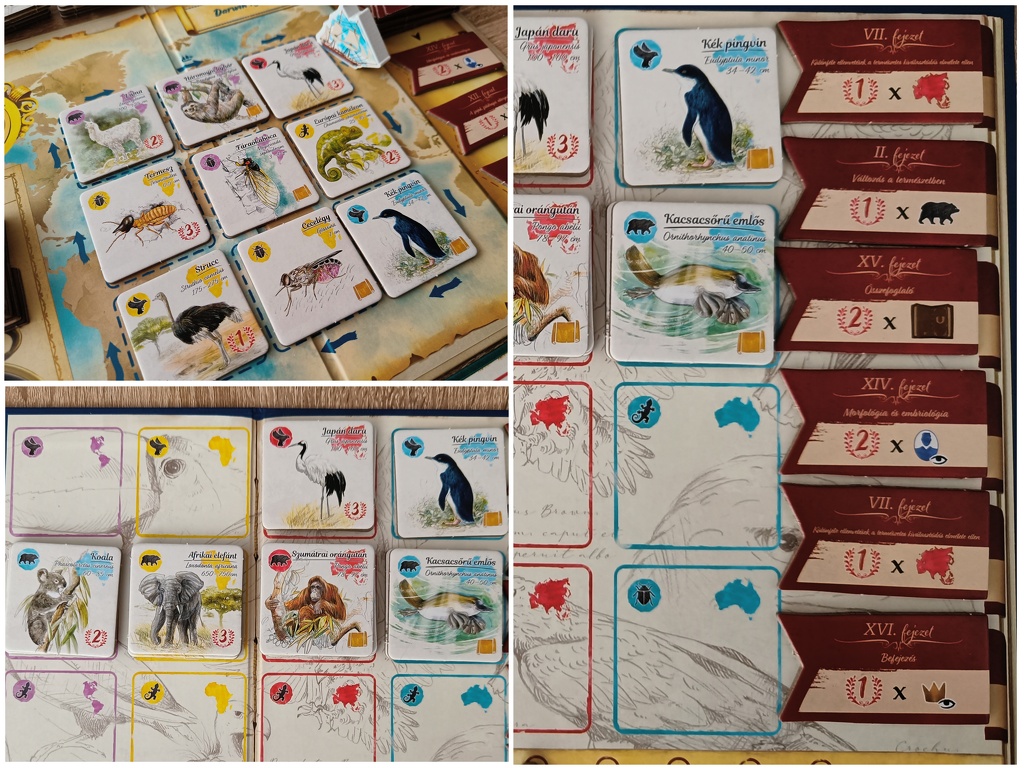 Egyetlen "negatívuma" számomra az a játékidő rövidsége, kicsit keveseltem azt a 12 lapkát, ami a táblámra került. De ez ugyanakkor az előnye is, hiszen szinte biztos, hogy sosem ugrik 30 perc fölé egy parti. A Darwin nyomában egy gyönyörűen illusztrált, könnyed családi társasjáték, amit szívesen ajánlok minden társasjátékos felfedező asztalára.
