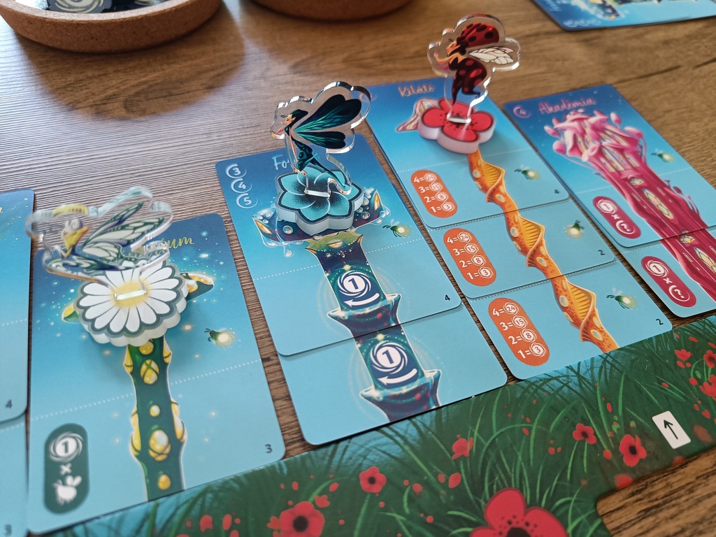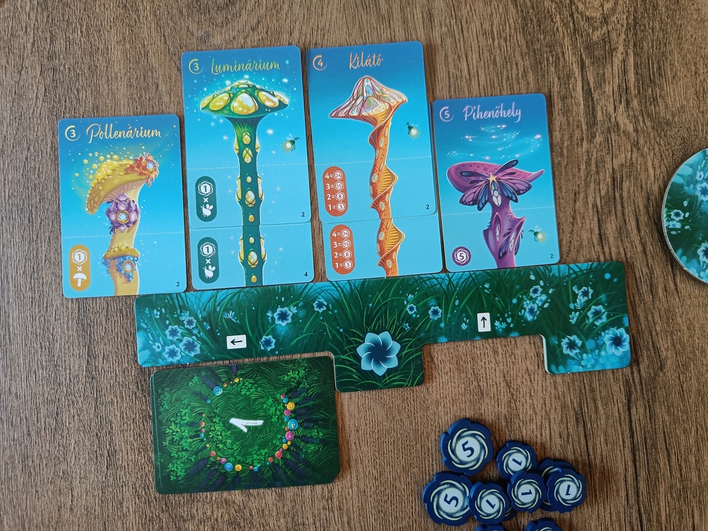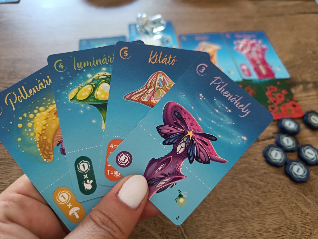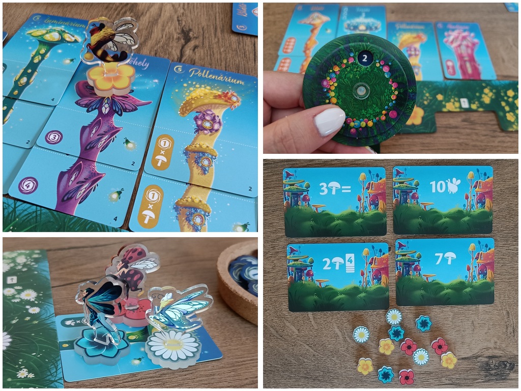 A kártyaválasztást - a körbejáró kártyákon és a gombaválasztási dilemmán kívül - a tündérem aktuális helye is befolyásolja, úgy kell lépnem, hogy a lehető legjobb helyre érkezzen. Ezek a kölcsönhatások és alkalmazkodás folyamatos figyelmet is kérnek. Az, hogy a többi játékos körében is "kaszálunk" rendkívül pozitív interakciót biztosít. A szép komponensek, a rendkívül élénk, mesés stílus igazi varázsvilágba repít minket. A látványos külcsín mögött azonban egy döntésekben bővelkedő, taktikus, de mégis könnyen tanulható családi társasjátékot kapunk.