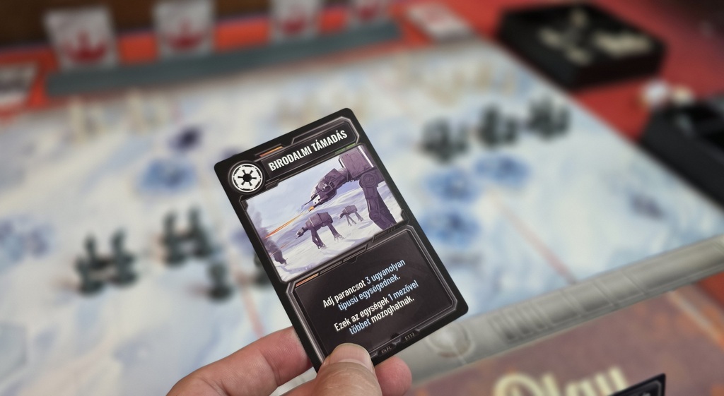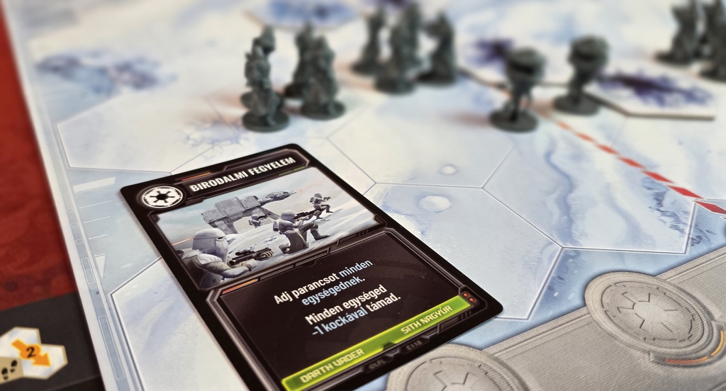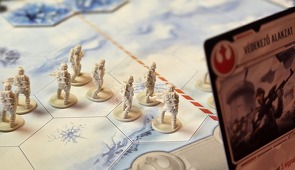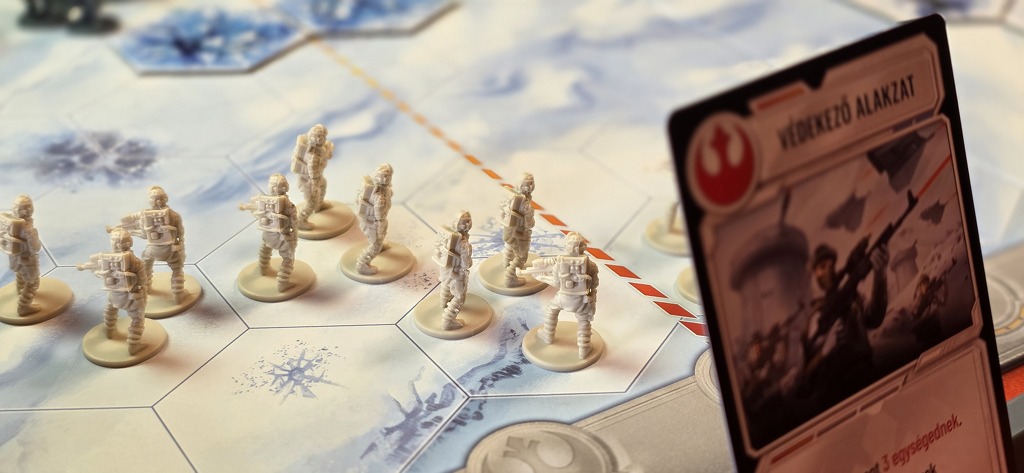 A hexákra osztott, a wargame műfajt lényegében családi játékká egyszerűsítő társas aztán számos néven és formában tért vissza: a Days of Wonder Memoir ‘44 címen, világháborús környezettel 2004-ben, majd a fantasy BattleLore-ként 2006-ban adta ki újra, hogy idén eljussunk a koncepció talán legjobb és legizgalmasabb reinstallációjához, amit csak el lehet képzelni (persze Warhammerön innen, A Gyűrűk Urán túl). Ez lett a Star Wars – A Hoth ostroma, melyet szerencsére a Gémklub magyarul is egyből elérhetővé tett. Fontos ez a kis apróság, hiszen az új Memoir ‘44-variáció valóban családi wargame-ként (is) működik, és mint olyan, nem árt, ha a kisebbektől a nagyokig mindenki megérti a szabályait és kártyáit.