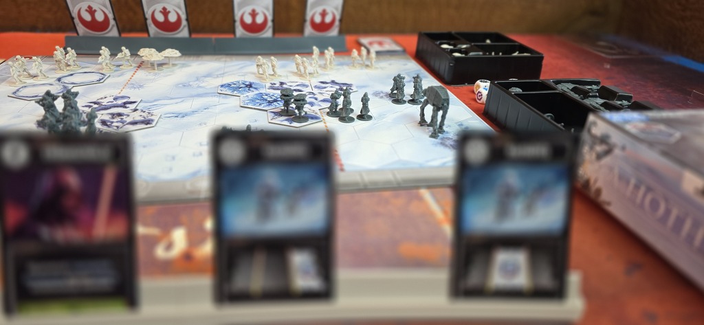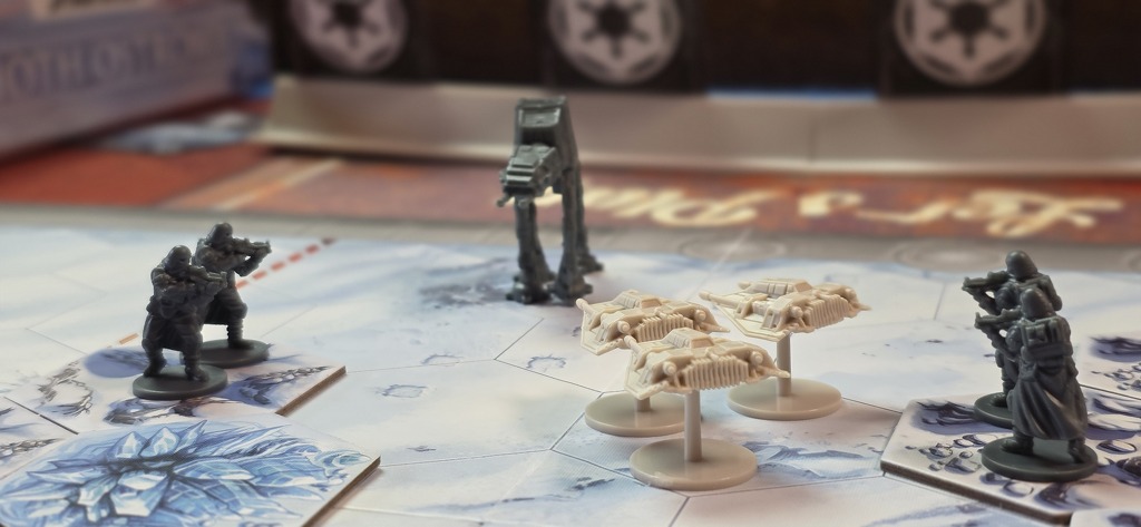 Ez lehet mozgás, lehet támadás, vagy éppen a kettő keveréke, de mindennek megvan a maga szabálya, így például a gyalogos egységek mozoghatnak egy mező helyett kettőt, de akkor például nincs támadási lehetőségük. Támadásnál szintén egy szabályrendszer alapján dobunk kockákkal, például egy gyalogos egység a szomszéd mezőre 3, a két mezővel távolabbi helyszínre azonban már csak 2, három mezővel odébb pedig mindössze 1 kockával dob. Egy AT-AT lépegető viszont mindhárom mezőre 3 kockát használ fel és a többi. Kockadobásnál van olyan eredmény, amely a gyalogosokat, és van, amelyik a járműveket sebzi, de akad olyan is, amely mindenkit, sőt még visszavonulásra is kényszeríthetjük az ellent. Ami izgalmasabbá teszi ezt az egészet, az az, hogy akadnak kártyák, melyek amellett, hogy akár több egységet mozgatnak, több mozgást vagy épp több kockát is kínálnak. A tereptípusok pedig nehezíthetik a mozgást és/vagy a támadást. Emiatt már alaposan át kell gondolni minden egyes lépésünket, a történet pedig itt sem ér véget, ugyanis a Hoth hófútta felszíne számos további izgalmat tartogat.