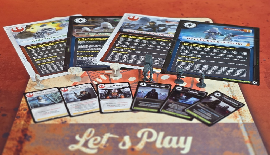 Eleve minden oldalnak van 9 extra lapja, melyek 3 hősre vannak leosztva. Ha pedig úgy gondoljuk – és már miért ne gondolnánk úgy –, akkor az alap pakliba egy hős három lapját is bele keverhetjük, ezzel elérve mondjuk egy nagyszabású Darth Vader-Luke Skywalker párbajt-háborút. Aztán ezen felül van még két kampány is, amelyhez mindkét oldal kap egy-egy kampányfüzetet, hogy utána szépen végig tudjanak menni a csaták során. A pontot az i-re és a koronát erre az egészre pedig az úgynevezett Epikus ütközet, a Hoth ostroma teszi fel, melyhez azonban szükséges egy hasonlóképpen elvetemült barát/családtag/ismerős, aki szintén megvette a játékot: a két példányt összeillesztve ugyanis egy speciális küldetés is megnyílik a küldetésfüzetben, amelynek méretei szerintem könnyedén elképzelhetőek. Ez lényegében a játék abszolút csimborasszója, amely miatt szerintem tényleg érdemes legalább egyszer elmenni akár egy társasjátékos klubba, elcipelve a saját példányt, és kifizetve a szükséges költségeket.