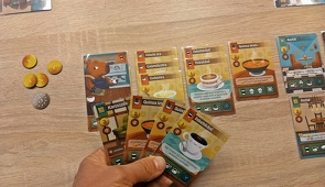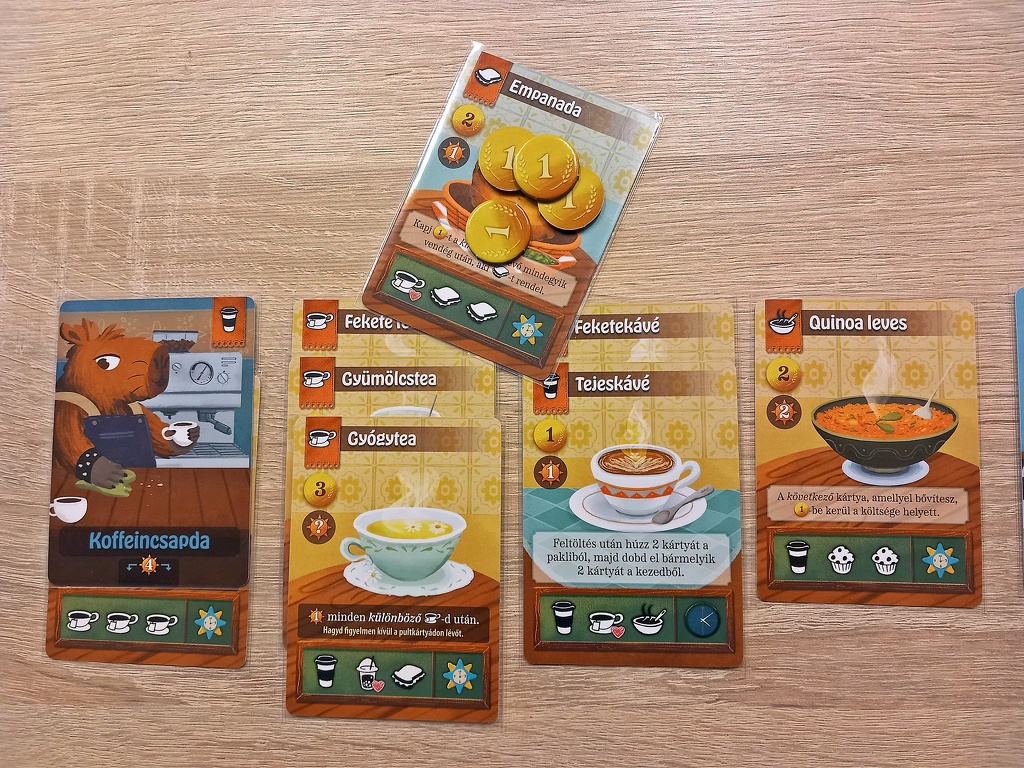 Amikor bővítésként játszol ki egy kártyát, akkor ki kell fizetned az árát. Ezután leteheted a játékteredre és onnantól a kínálatod részévé válik. Ettől kezdve a bal felső sarkában látható árutípus ikonját használod amikor egy vendéget kiszolgálsz (hosszú kávé, rövid kávé, süti szendvics stb.).