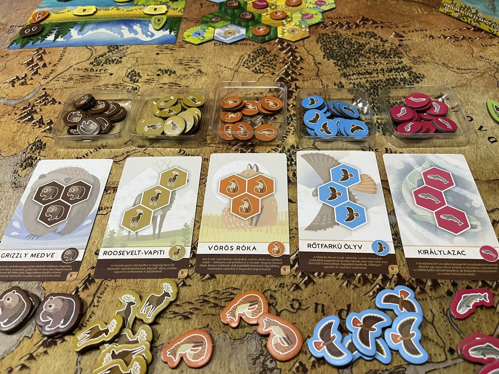 Ez már kicsit behozza a Cascadia alapjait is, mert amellett, hogy ugyanolyan hármas összefüggő állatcsoportokat kell alkotni, a formára is figyelni kell, ami az egyes állat kártyákon található.