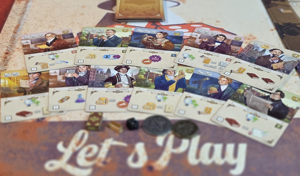 Éppen ezért kedvelem például az Artana és Genius Games kiadványait (First in Flight, Genotype: A Mendelian Genetics Game vagy Cellulose: A Plant Cell Biology Game), mellettük pedig olyan társasokat, mint a Darwin utazásai, a Darwin és a Marie Curie nyomában, a Galileo Galilei… vagy éppen az Ada’s Dream, mely az ötletes, de egyszerűbb kocka-mechanikáról is híres angol Alley Cat Games (Dice Hospital, Dice Theme Park) legújabb üdvöskéje.