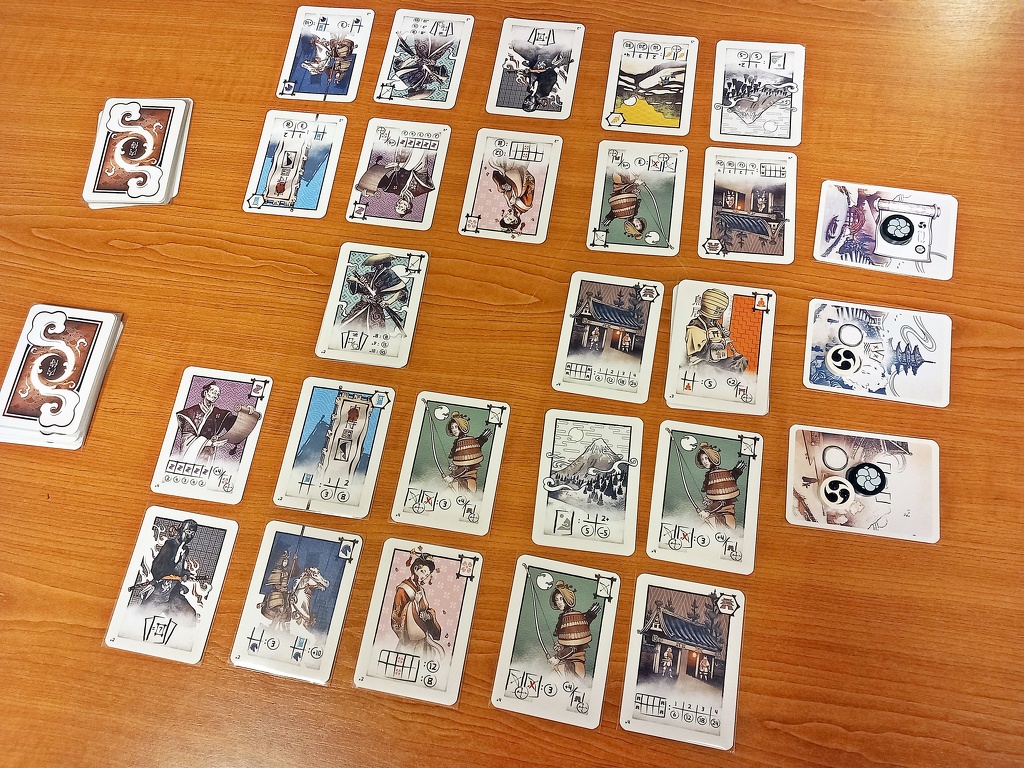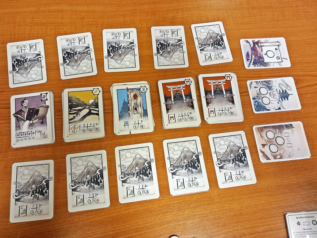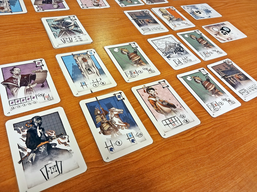 Mi eddig nem találkoztunk hasonló felépítésű játékkal. Persze tablóépítő játék sok van, de ez a rendszer elég egyedinek tűnik. Számunkra üdítő újítás a kézben tartott második sor, melynek lapjai szomszédosak az asztalon lévőkkel, ugyanakkor titkosak az ellefél számára. A sógun parancsa nemcsak taktikai mélységet ad a játéknak, hanem feszült interakcióval is fűszerezi. A kötött kártyapozíciókat pedig legtöbbször ütés-vivős játékokban láttuk.