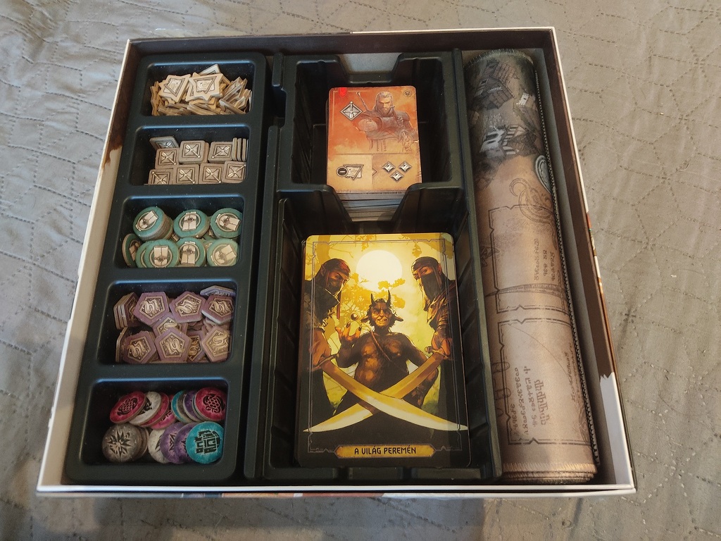 A doboz kialakítása igényes. Még az olcsóbb változathoz is jár a kellemes tapintású neoprén playmat és a strapabíró műanyag rendező. Ez utóbbiban jól tudjuk szortírozni a komponensek egy részét. A maradékot sajnos már ötletszerűen kell szórnunk a fennmaradt rekeszekbe. Nem kifejezetten zavaró, de jobban örültem volna egy fokkal átgondoltabb tervezésnek.