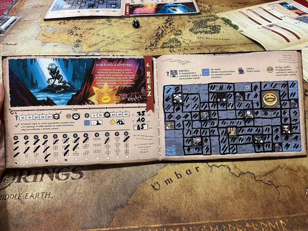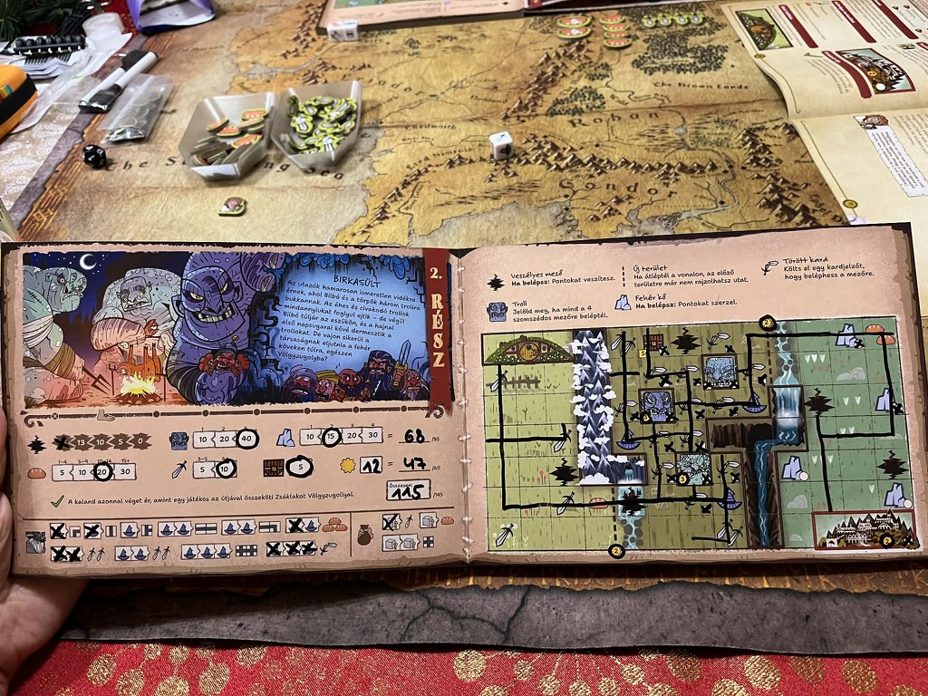 A Hobbit: Oda-vissza egy nagyon szórakoztató és hangulatos roll&write. A kalandok a könyv fejezeteit követik, és minden kalandot 1-1 eredeti Hobbit idézet színesíti. Szintén jópofa, hogy mindenki kap egy saját kalandkönyvet, amit tényleg jó kézbe venni.