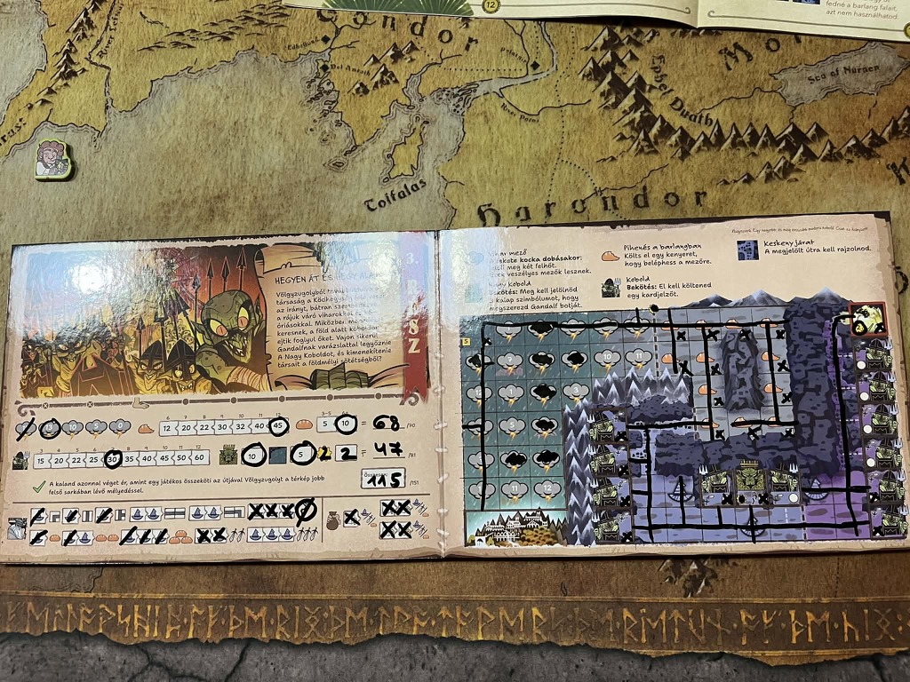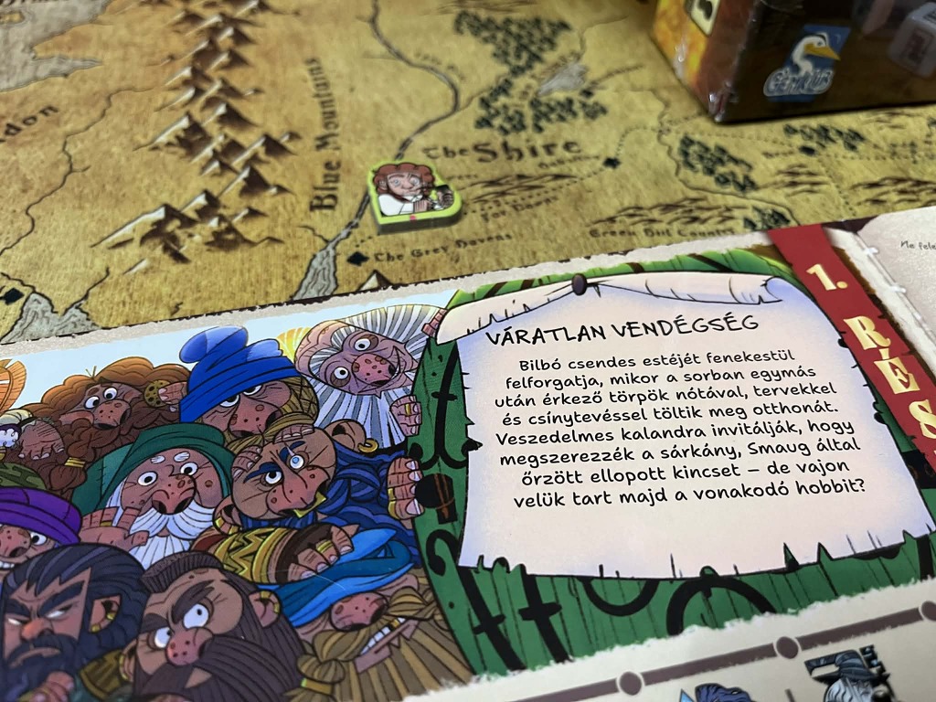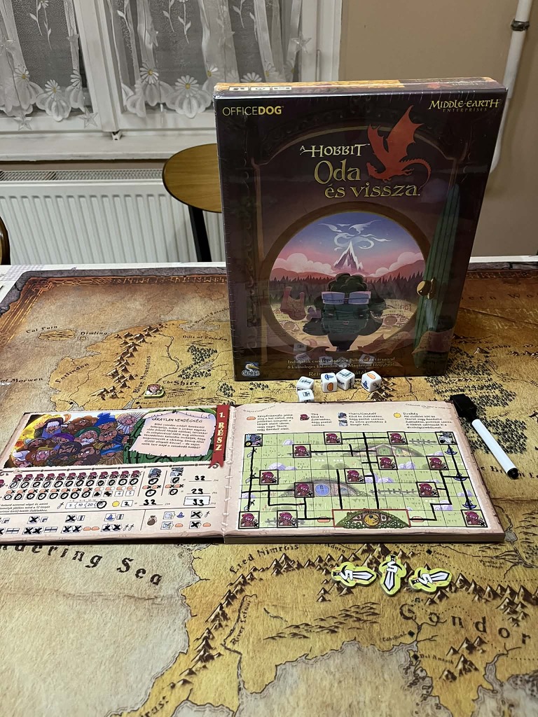 Életem első meghatározó könyvélménye J.R.R. Tolkien nevéhez fűződik, ugyanis a 14. szülinapi ajándékom a Gyűrűk ura volt. Annyira lenyűgözött ez a világ, hogy azóta is hatalmas Gyűrűk ura rajongó vagyok. Minden érdekel, ami a témával kapcsolatos, így természetesen a társasjátékok is. Próbáltam Gyűrűk urás kártyajátékot, munkáslehelyezős társast, deck-buildinget, sőt még app vezérelt dungeon crowlert is, de roll & write még nem szerepelt a repertoárban, így amikor a Gémklub bejelentette, hogy kiadja magyarul Reiner Knizia A Hobbit: oda-vissza játékát azonnal izgatott lettem.