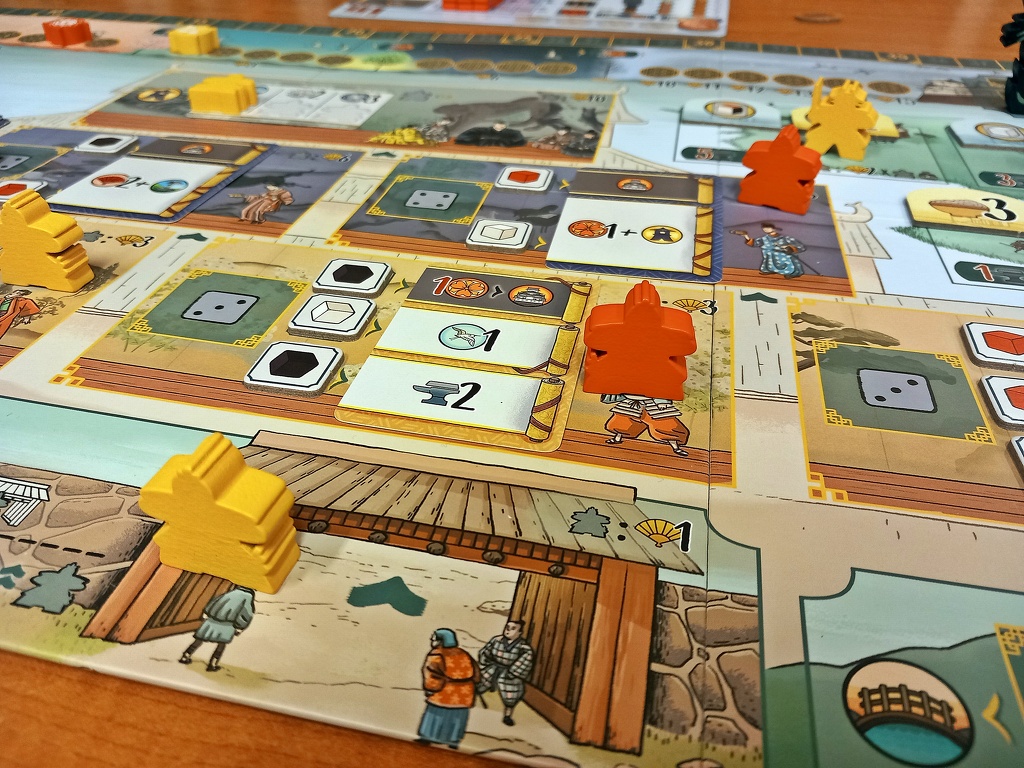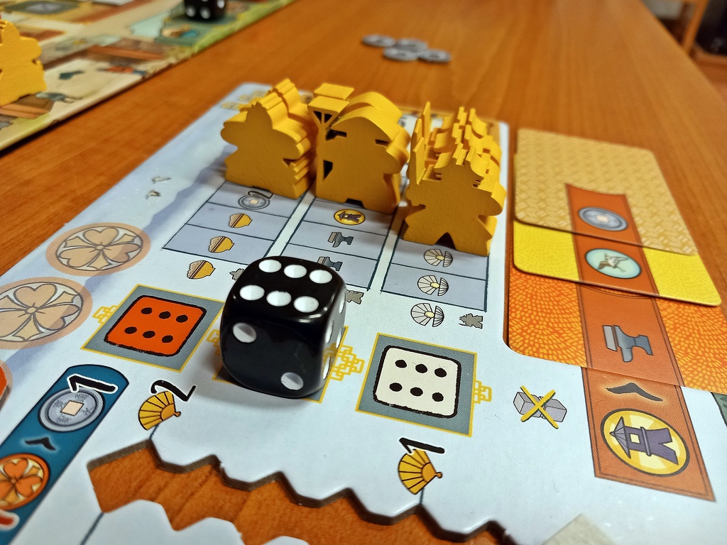 Ez után jön az összetettebb rész. Az akcióhelyekre ugyanis meghatározott értékű kockát kell tenni. Ha a kocka kisebb, akkor a különbözetet ki kell fizetni, ha pedig nagyobb, akkor megkapod pénzben. 3-4 fős játékban van lehetőséged már lent lévő kockára is kockát tenni, ekkor viszont már a látható érték lesz a mérvadó.
