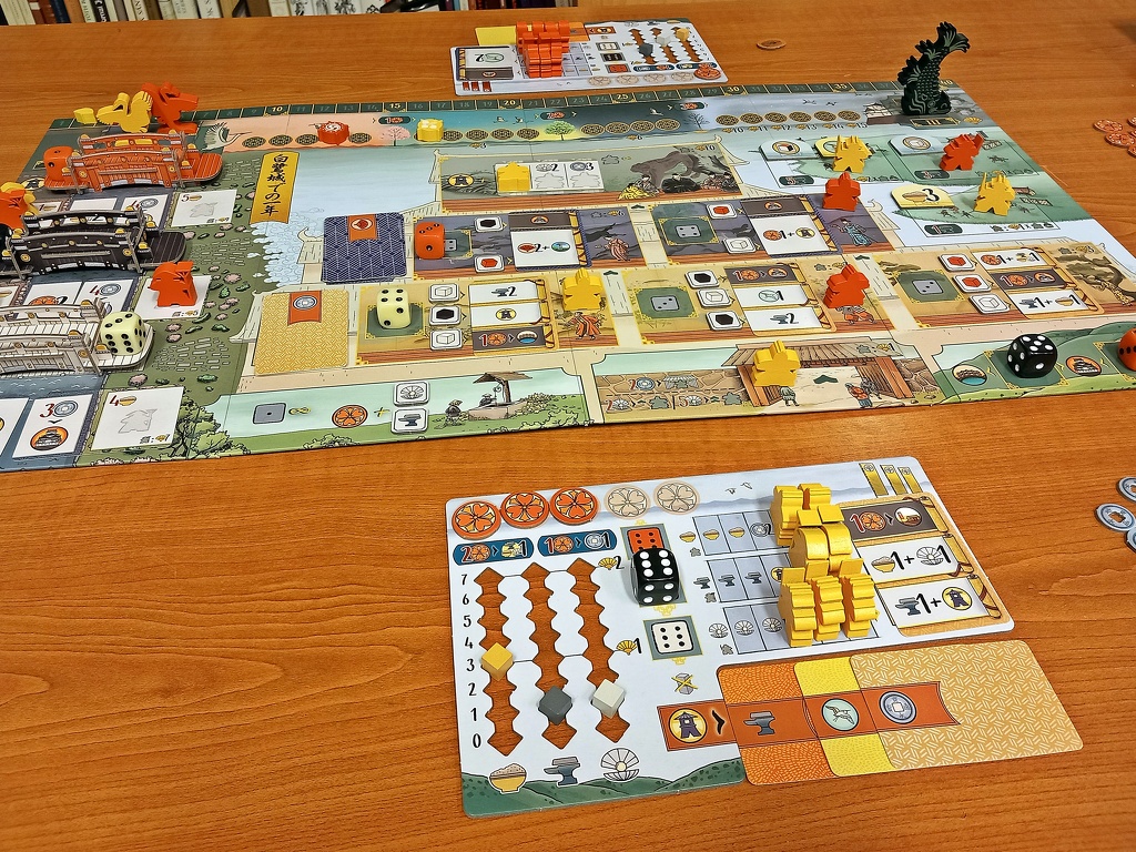 A játékmenet meglehetősen szűk, összesen kilenc kockát fogsz lerakni a játék során. Mindig jól át kell gondolni, mit hogyan fektetsz be, milyen “akció láncokat” építesz ki, és hogy az utolsó lépésre meg lesz-e a kellő fedezet. Nálunk gyakori hogy egy egész fordulót erőforrás és pénz gyűjtésének szenteljük, amivel egy későbbi lépés egyetlen hosszú lépés sorozatát finanszírozzuk meg. Mert ez lesz a játék lényege: hogy minél kevesebb lépésből a lehető legtöbb dolgot hajtsd végre.