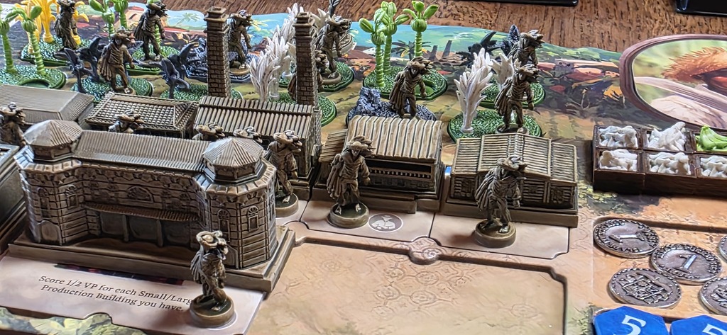 Ami igazán izgalmassá teszi ezt az egész körforgást, amely akár egy rendkívül logikus és életszerű kooperatív városfejlesztésként is felfogható, az az épületek és a szerepek használata. A jókor és jól használt kombók nagyon komoly nyereséget eredményeznek, legyen szó pénzről vagy győzelmi pontról. Bizonyos épületek nemcsak bónuszokat váltanak ki, így nem vagyunk többé kötve az adott szerephez, de kimondottan komoly előnyöket is biztosítanak. Így a Kórház minden ültetvény, az Iskola pedig minden épület mellé biztosítja a működéshez szükséges személyzetet. Mert egyébként minden kizárólag csak úgy működőképes, ha van mellé munkaerő.