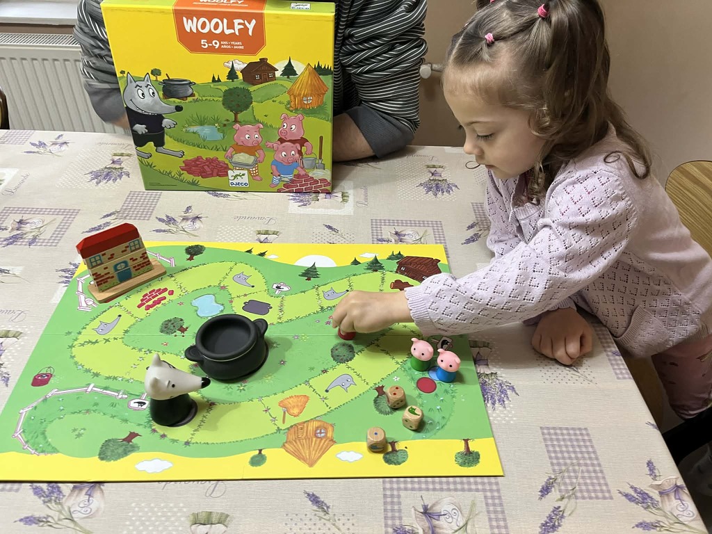 Kisgyerekes szülőként sokszor ismerős a dilemma, hogy próbáljunk minőségi időt megteremteni a családban a legkisebbekkel. Számomra nem is kérdés, hogy a legértékesebb ajándék az együtt töltött minőségi idő, és azt vallom, hogy egy jó társasjáték összehozza az egész családot. A társasjátékok amellett, hogy fejlesztik a kognitív készségeket, megteremtik a közös együttlét során az érzelmi biztonságot is, ami gyermekkorban az egyik legfontosabb dolog. De mik is a jó gyerek társasjátékok ismérvei? Szerintem a fejlesztő mivolta mellett, a másik fontos tényező az esztétikum és minőség, hisz a gyerekeket elsősorban szép illusztrációkkal és aranyos figurákkal lehet motiválni. Ebben élen jár a Djeco, mert társasjátékaik amellett, hogy a legkisebb korosztálynak szólnak, nagyon egyedi illusztrációkkal és jó minőségű, aranyos komponensekkel rendelkeznek, amikért a kis kezecskék örömmel kapnak utána. Bemutatóban a Djeco gondozásában megjelent Woolfy - A három kismalac-ot nézem meg közelebbről.