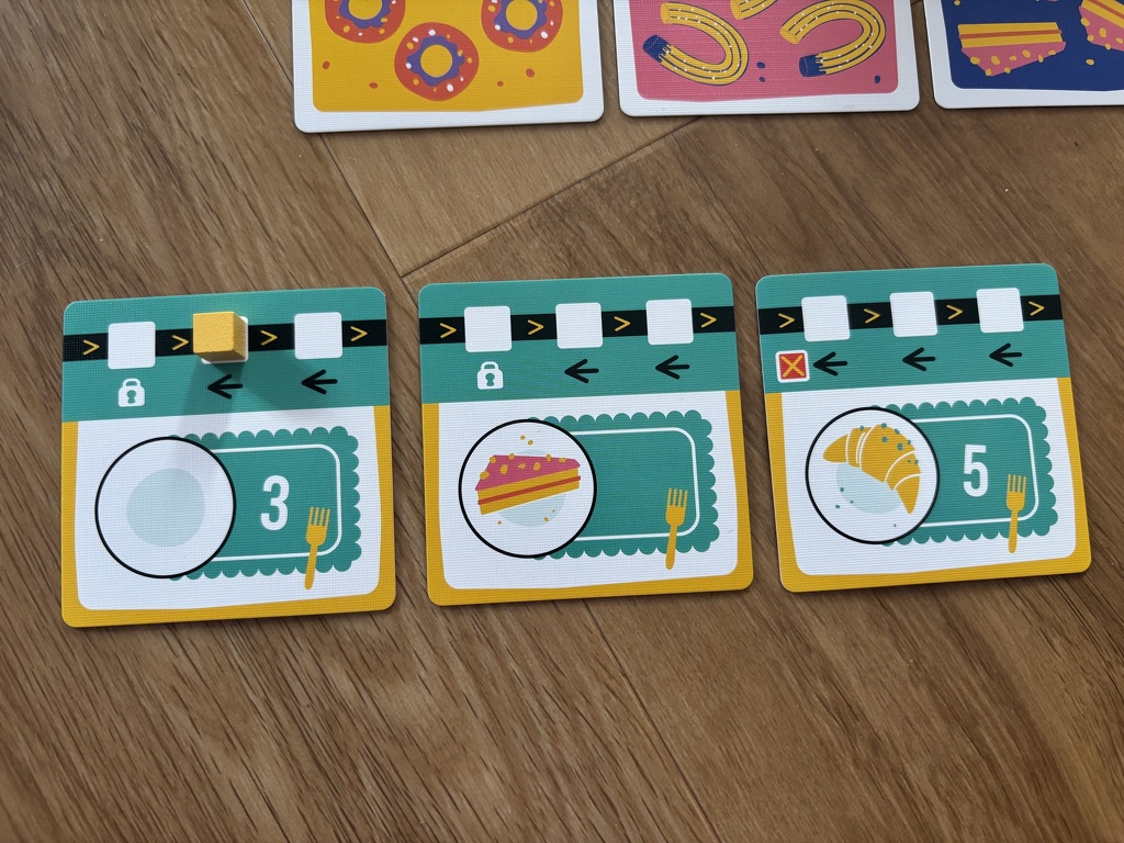 A játék előkészítéséhez rakjátok ki az összes sütikártyát 6x6-os elrendezésben. Összesen hat különböző finomság szerepel a kártyákon, amelyek 1–6 közötti darabszámmal láthatók. Készítsétek elő a korlátozáskártyákat színek – azaz nehézségi szintek – szerint, majd vegyétek elő a két menükártyát és a két dobókockát. A játék kezdetén be kell lőnötök egy nehézségi szintet 1–16 között, majd vegyétek magatokhoz a menükártyán látható színű három korlátozáskártyát a megadott sorrendben, egyelőre mindet lefordítva. Ezek változatos és egyre nehezedő feladatok, vagyis inkább tiltások elé állítanak titeket. Minden játékos vegyen el egy jelölőt, amellyel majd a korlátozáskártyákon lévő haladást lépi le, vagyis halad előre a futószalagon. Végül mindenki válassza ki, melyik kezével játszik; ennek a későbbiek során lesz fontos szerepe.