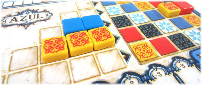 Miért szerettem bele az Azulba? Mert gyönyörű! Kívül-belül gyönyörű. Nem csak tetszetős, nem csak a doboza szép, nem csak az anyaga vonzó, hanem a lényege lenyűgöző. Egy kimagaslóan jó játék lelke egy olyan ötlet, amit a játékosok közös élményként tapasztalnak meg a játékmenetben. Egy ilyen játékötletet öröm újra és újra végiggondolni, minden döntésnél új oldalról megvizsgálni, kipróbálni, tapasztalni. Az Azul ötlete, hogy körről körre csodaszép királyi csempékből (azulejókból, ejtsd: azulézso) válogatunk, és beépítjük a saját mozaikunkba. A csempék kemény bakelitből készültek (a mahjongköveket készítik ebből az anyagból Kínában, a csont- és bambuszköveket kiváltva), és a tapintásuk tényleg olyan, mintha égetett csempékkel játszanánk. A kövek ezenkívül még mintásak is, és a méretük is olyan, hogy szívesen tapogatja az ember. A játékmenet pedig éppen erre az érzésre épít. A középen lévő közös készletből válogatunk, és sokszor nyúlunk a kövekhez, babráljuk, szeretgetjük őket. Tesszük ezt azért, mert szép képet akarunk készíteni. Itt emelkedik az absztrakt játék szintjéről az élmény egy magasabb tematikai szintre, mert a szépség itt nem csak jelképes, hanem valódi. És ez a szépség megjelenik abban is, ahogy a lehetőségeket mérlegeljük. Sok apró pozitív visszacsatolás, sok kis öröm kíséri a döntéseinket. Van tétje, hogy mit választunk, hogy marad-e még abból, ami majd később kellhet nekünk, van tervezés, előre gondolkodás, ugyanakkor minden egyes kőnek örül az ember, amit éppen megszerez. Gyönyörű a flow.