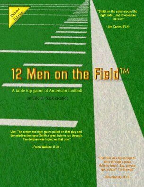 12 Men on the Field:Deluxe Edition lets you be the owner of a professional football franchise. It is based on football as it is played in the United States. You follow your team through a 14 week season and, with good play calling and some luck, into the playoffs.