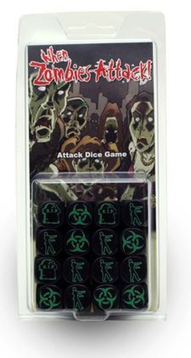 From the publisher's website: The dead have risen and are hungry for you! So, what will you do...When Zombies Attack!? When Zombies Attack! is a fast-paced, action packed dice game where you and your friends attempt to reach safety while evading a ravenous zombie mob! When Zombies Attack! is a complete game which contains 16 custom made dice, dice bag, and...