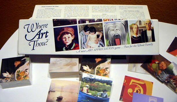 An artistic twist on four classic games: use these full-color cards depicting details of thirty-six paintings from eleven American museums, along with the accompanying fold-out game sheet 10"x25" printed with full black and white painting of each detail shown in the 36 pairs of cards, to play concentration, bingo, trivia, mix-and-match/parent and child...