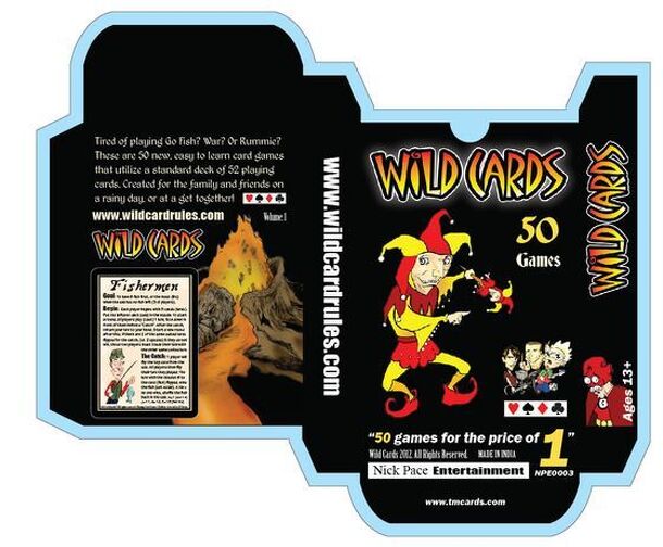 Wild Cards are a collection of rules for games that utilize a deck of 52 playing cards. Each card contains the rules for a unique game made up by Nick Pace. I have played these a few times at parties and with family after being challenged to make up some good social games. Think of these as a replacement for the useless joker cards that accompany every box...
