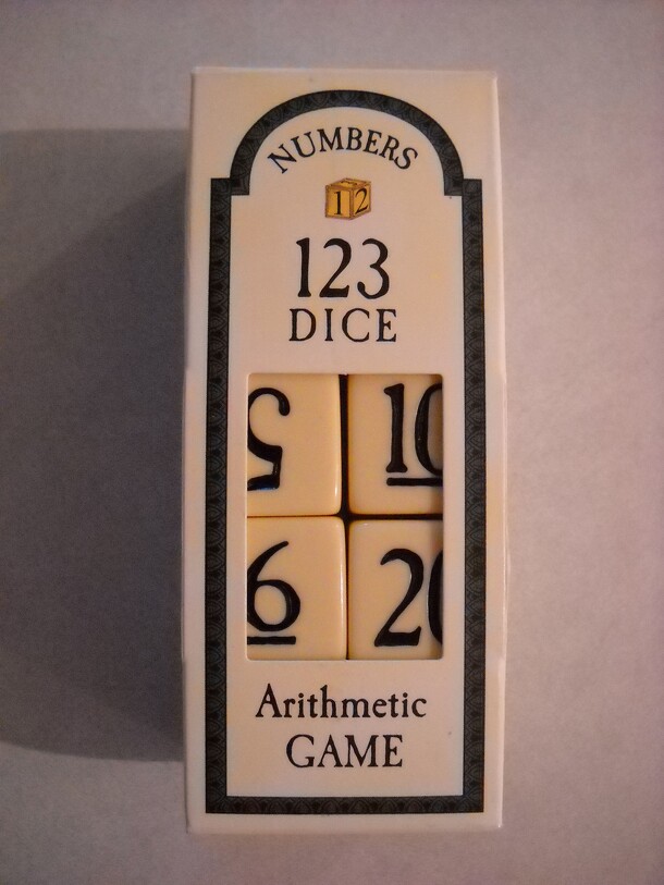 123 Dice Game by Collective Wisdom This small-box game has eight 1" dice with large numbers ranging from 1-72. Rules for 14 games and a few variations are included. All are math games designed for preschool through fourth grade. They are: ________________________________________ Preschool - 1st Grade: Number Identification Game - Roll the dice and name the...