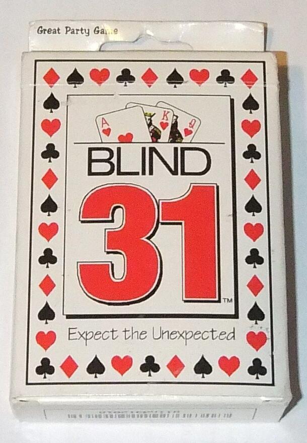 In this card game players try to replace cards in their hand of three cards so that it gets close to the target of 31 points. The twist is that they can't look at their initial three cards unless they are discarded in favour of other, hopefully better, cards. Pagat.com says: This game by Gary Woitzik combines the objective of 31 (Scat, Blitz) with a play...