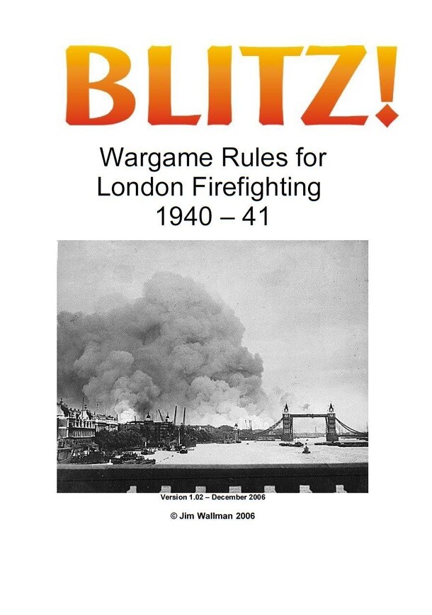 Subtitled "Wargame Rules for London Firefighting 1940 - 41". From the rulebook introduction: "This is a low level operational game about firefighting during the London Blitz in 1940/41. The basic premise is that the player(s) represent fire officers trying to combat fires and deal with emergencies in the critical period of the first London Blitz of...
