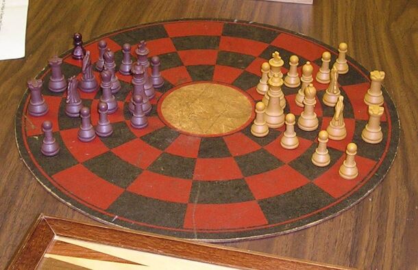An ancient chess variant which uses a 16 X 4 circular board. Piece movement is the same except that Queen moves only one space diagonally and Bishop moves two diagonally, jumping the first space. Additionally, two pawns blocking one another's paths may be removed (both are removed). A modern variant by David Reynolds using the same board is known as...