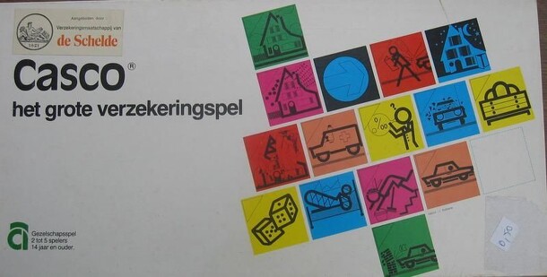 Casco is a Monopoly-like game based on insurances. You have to be the first to own a house, furniture and a car; and you have to have two life-insurances. One for a pension, the other for your children. Moving along the board, you can have accidents. If you're insured, no problemo, else it's hard cash. Apparently this game was given away to customers of...