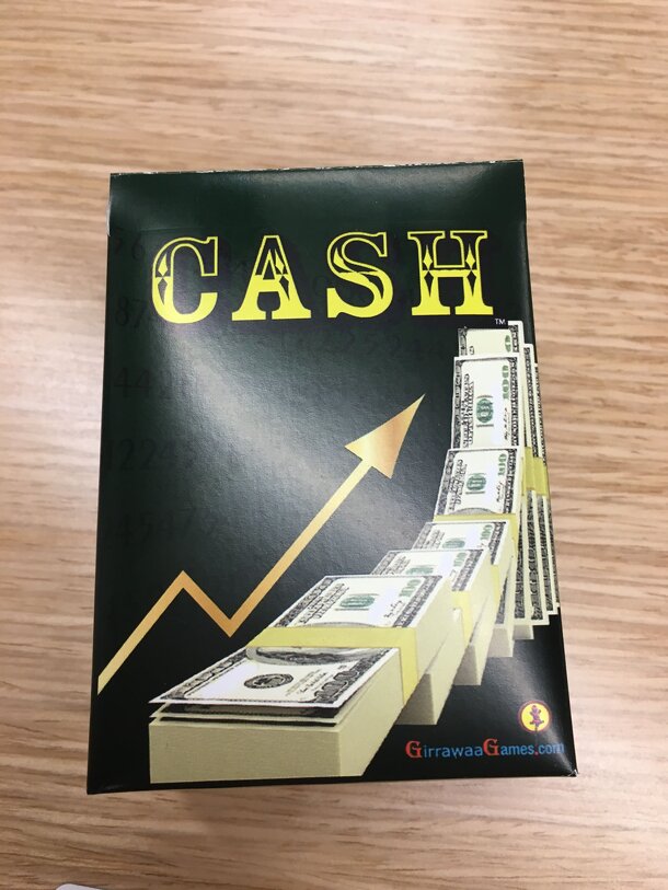 Description from the publisher: CASH is an attack strategy card game for 2-8 players. It is a highly strategy focused game consisting of 216 uniquely designed cards. The object of the game is to race to $1 Million while blocking or hindering other players to achieving the same. CASH is a lot of fun, easy to learn and great for the whole family. However, do...