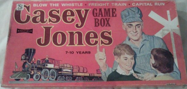 The Casey Jones Game Box contains three games: Blow the Whistle, Capital Run, and Freight Train. All games are played with a single die, and (at most) 20 train cars. Blow the Whistle is a simple race game for two players, playable by children as young as three-years-old. Players roll and move, with the requirement that they make horn sounds at certain...