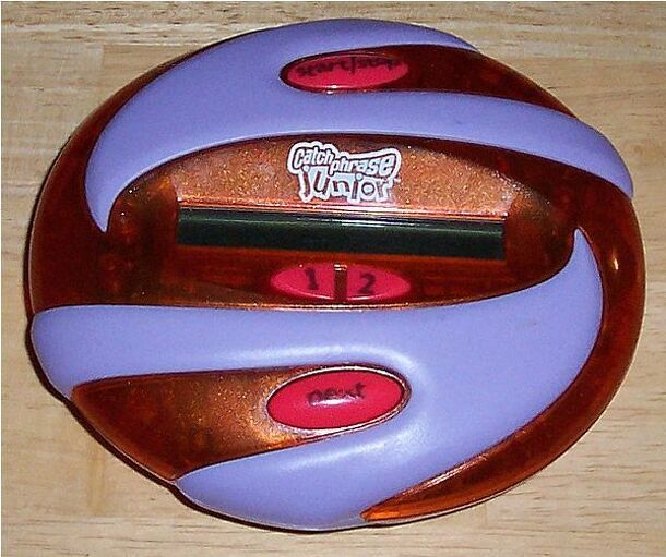 Same as Catch Phrase but words or phrases that appear on the readout are familiar to adults and well as children. Anyone who can read can play. Players sit in a circle and divide teams into every other person. One person is selected as the starting player or "Clue Giver." After reading the "target word" on the game's display, the clue giver yells out...