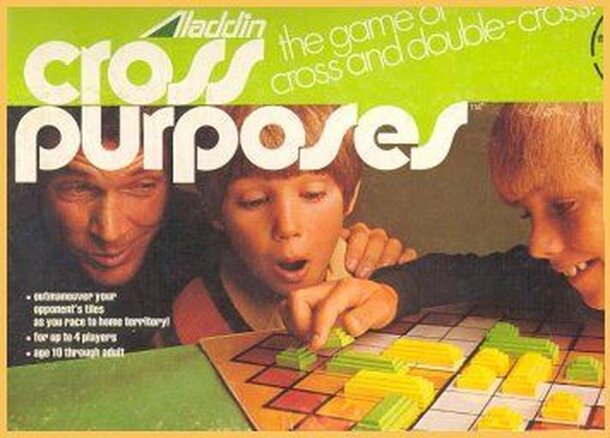 From the rules: Cross Purposes is a game of strategy for two players. You start a game of Cross Purposes with five trains at your House. Your goal is to get all five trains across the board to your Station, and then to get them all back Home. The train tracks might not run from your Home to your Station, but you can switch the tracks so that they will...