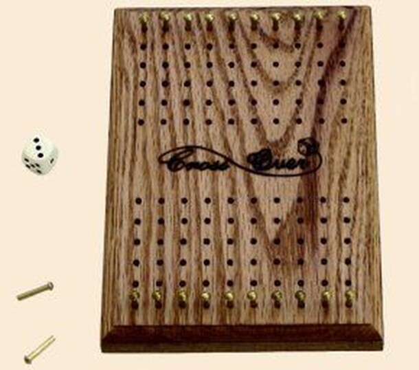 Cross Over is a two-player game of thought and chance. Each player gets (10) pegs and they place them in their start line. Roll the die to determine move, some numbers require a choice of move. This is where the strategy comes in. You win when you remove all the pegs off your side before your opponent does. There is one catch your opponent will try to keep...