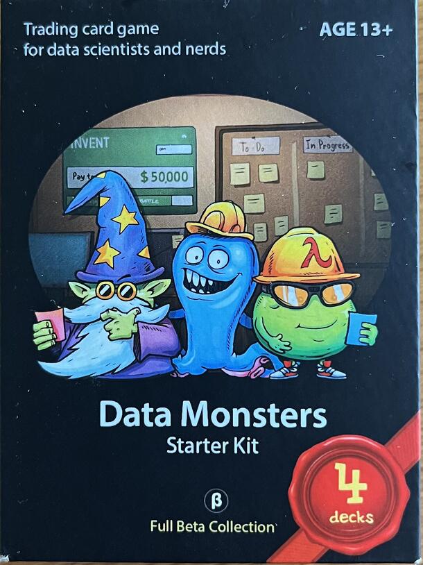 Data Monsters is a trading card game for data scientists and nerds. The players represent R&D laboratories. Each player has their own deck of cards, representing Monsters, Tools and Hacks. By playing these cards and activating their abilities, they try to defeat a card from the Challenge deck, representing a software project. When the Challenge deck is...