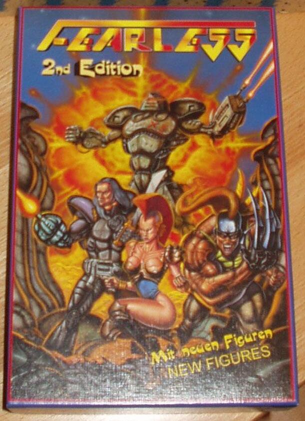 Fearless is a Science Fiction skirmish game with 1 or more miniatures per player. Each of these characters has his own stats card. The game is played in an arena, where both sides enter one-by-one through teleportation gates. The game comes with three randomly selected metal miniatures. Additional miniatures are available from the publisher (and not...