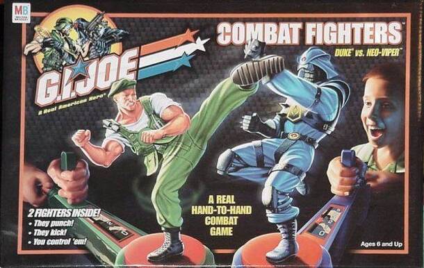 This one-on-one action/dexterity game pits the G.I. Joe action figure Duke against Cobra infantry trooper Neo-Viper in a match to five points. Turning the controller allows the two figures to attack with kicks and punches, with the object to connect with a small "strike plate" on the opposing character's chest (which releases the catch holding the figure...