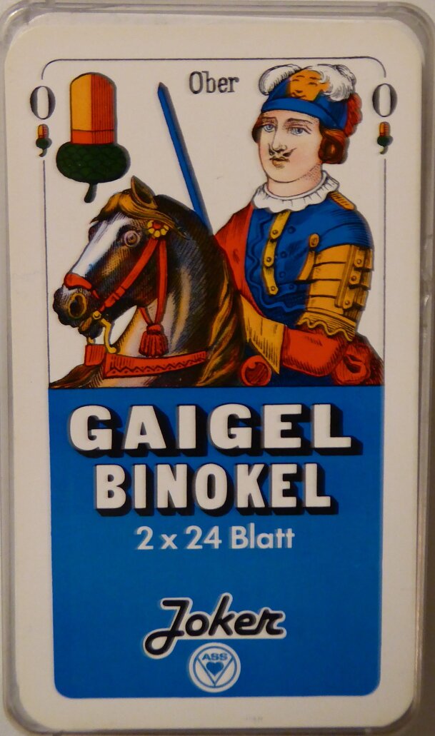 Gaigel is factually a Swabian variant of Sixty-Six/Schnapsen. It is a German trick taking game that is best played by 4 (6) players in 2 (3) fixed partnerships, but also works well with two. There are no teams in 3-player games. It is usually played with a 48-card deck with German suits (hearts, bells, leaves, acorns), but can also be played with just the...